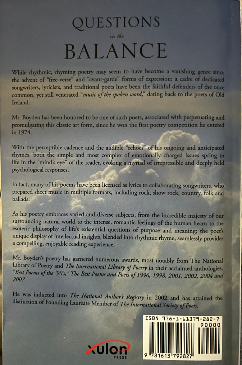 Questions in the Balance is available in paperback, in paperback form from Barnes and Noble. A 2nd edition is in the works!